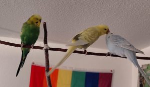 Sprachlos nahm die Pflegestelle den frierenden, verwaisten Wellensittich an sich und fuhr mit ihm nach Hause. Dort setzte sie ihn zu Ernie und Bert, zwei Wellensittiche, die bereits ein liebevolles Zuhause in Aussicht hatten und in den nächsten Tagen umziehen sollten. Innerhalb weniger Stunden wurden Chico und Ernie unzertrennlich. Schnäbeln, Nähe, Vertrauen – als hätten sie sich ein Leben lang gesucht. Bert betrachtete diese neue Freundschaft gelassen. Das Pflegefrauchen hatte erst große Bedenken und auch ein wenig Sorge: Wie sollte sie es übers Herz bringen, diese frisch entstandene Freundschaft wieder zu trennen? Doch wer nicht fragt, bekommt auch keine Antwort: Ein Anruf bei den zukünftigen Adoptanten von Ernie und Bert, eine kurze Schilderung der neuen Situation und dann die erfreuliche Antwort und Entscheidung: „Wir übernehmen Chico auch“. Die Adoptanten erklärten sich spontan bereit, alle drei Sittiche in ihren bestehenden Schwarm aufzunehmen. Es war eine große Erleichterung für die Pflegestelle und das große Glück für Chico, der nun Teil einer großen Vogel-Familie ist.