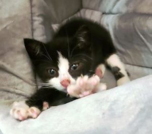 Da Vinci verlor kurz nach seiner Geburt seine Geschwister und verbrachte seine ersten Lebenswochen als Einzelkind bei Mama Fibi. Er hätte sich so sehr über einen gleichaltrigen Raufkumpanen gefreut… und dann kam Picasso! Picasso wurde ganz alleine in einem Industriegebiet gefunden, vermutlich wurde der Knirps ausgesetzt. Da Vinci konnte sein Glück kaum fassen, als da plötzlich ein kleines, einsames Katerchen in seinem Spieleparadies wartete.