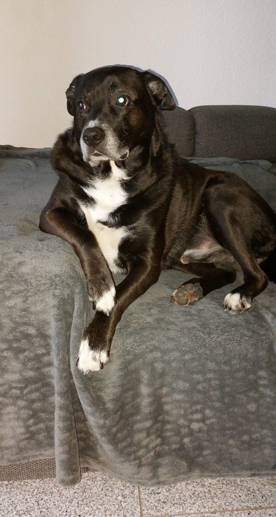 Feuerwerk ist auch nicht seins, er hat Angst davor und braucht eine sichere Ecke und seinen Mensch. Auch Tierarztbesuche machen ihm Angst.