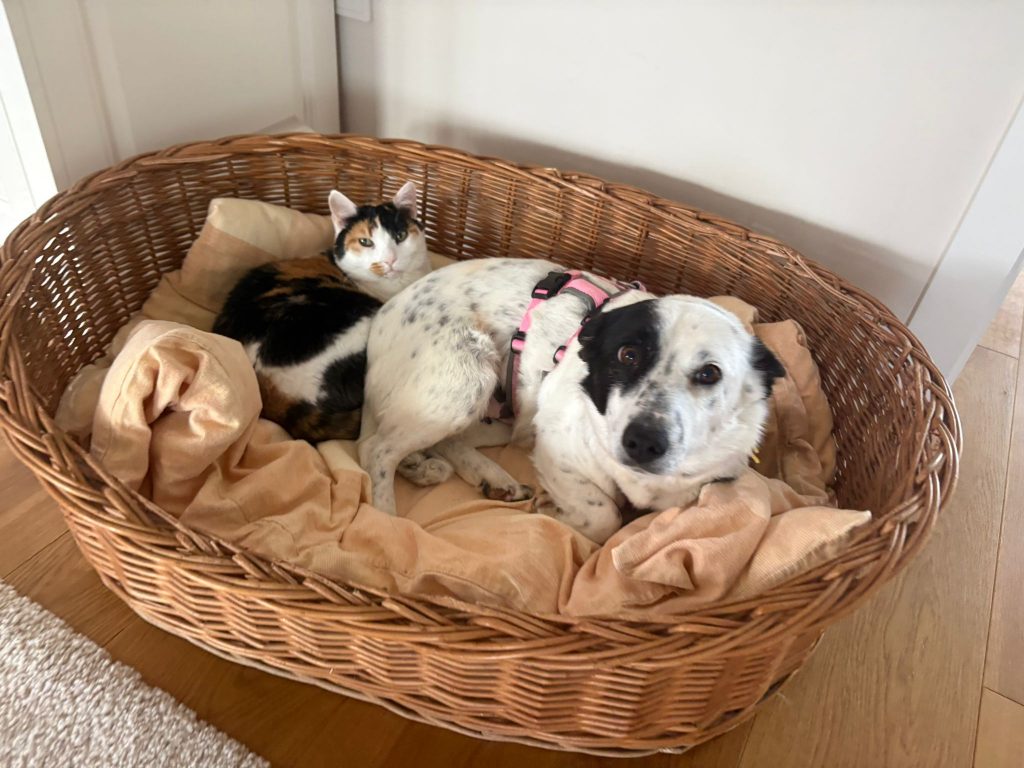 Beschreibung: Als Kira in ihrer Pflegestelle ankam, saß sie zunächst stundenlang in einem Körbchen in einer Ecke und beobachtete alles neugierig. Dann jedoch siegte die Neugier und sie begann, vorsichtig alles zu erkunden – Liegeplätze, Mitbewohner, Katzen & Kinder.