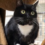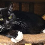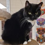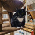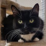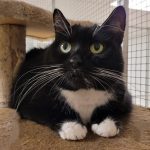 Die schwarz-weiße Katzendame ist eine etwas ängstliche aber dennoch freundliche Katze, nach einem kurzen Begrüßungsfaucher läßt sie sich ausgiebig kraulen.